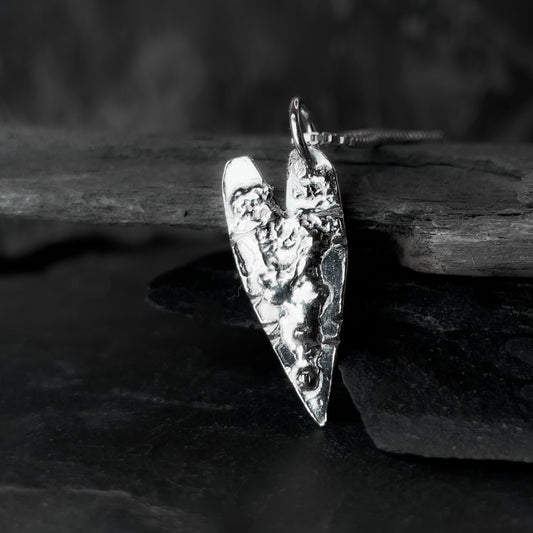 Questo ciondolo rappresenta un cuore con segni e cicatrici, a descrivere il vissuto che ognuno di noi porta con se.