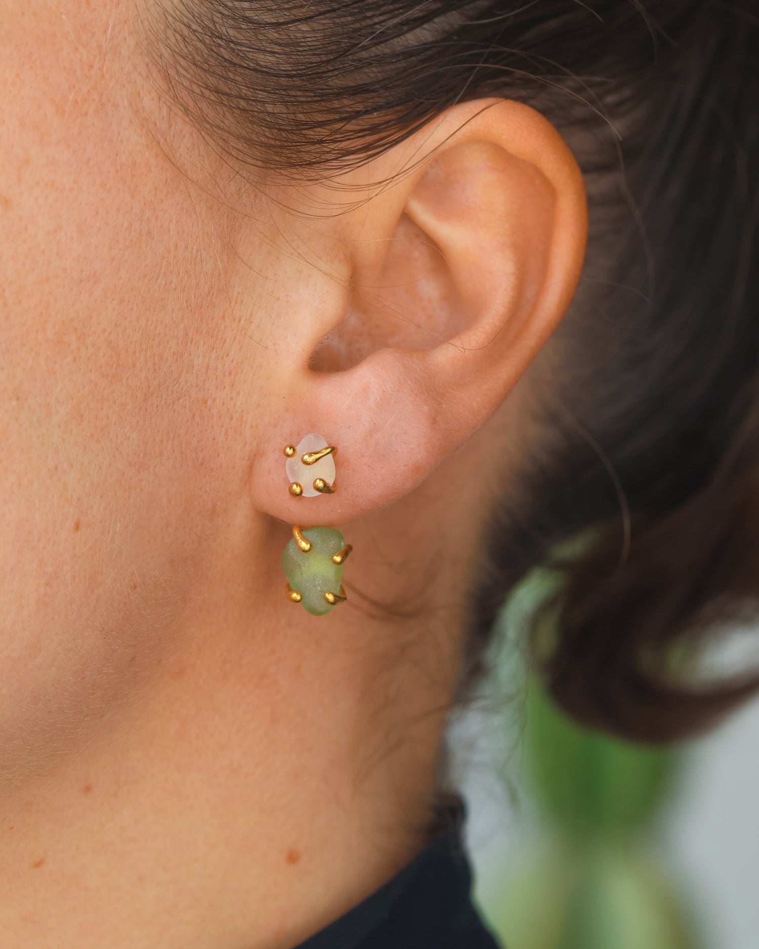The earring is entirely handmade, it is possible to select the color of the glass, the shape is clearly always irregular so the earring will be a unique piece based on the prototype in the photo but made based on glass.