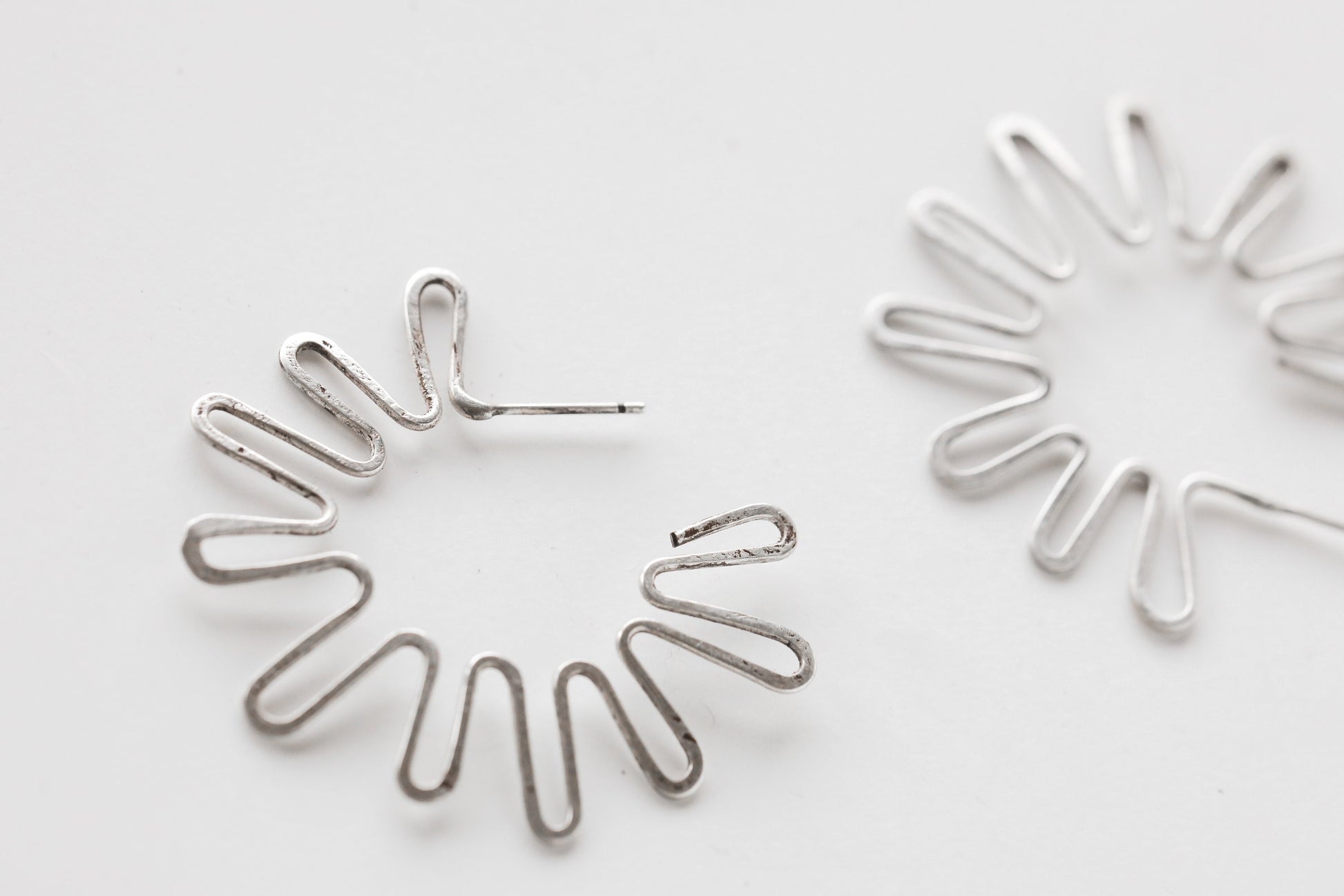 These earrings are comfortable and elegant, entirely handmade, until the final design is reached.