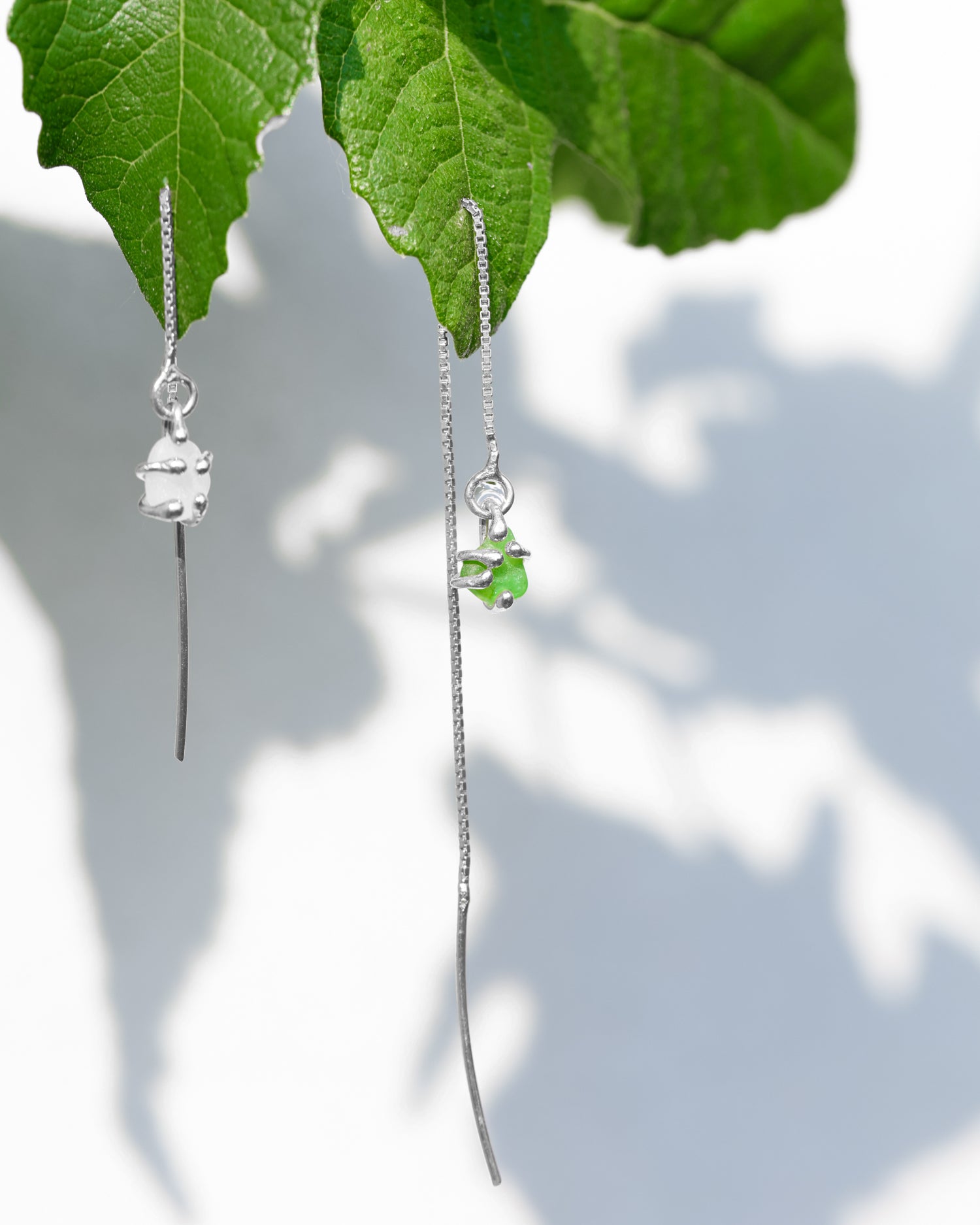 Earring in 925 silver and glass hand-picked from the beach.