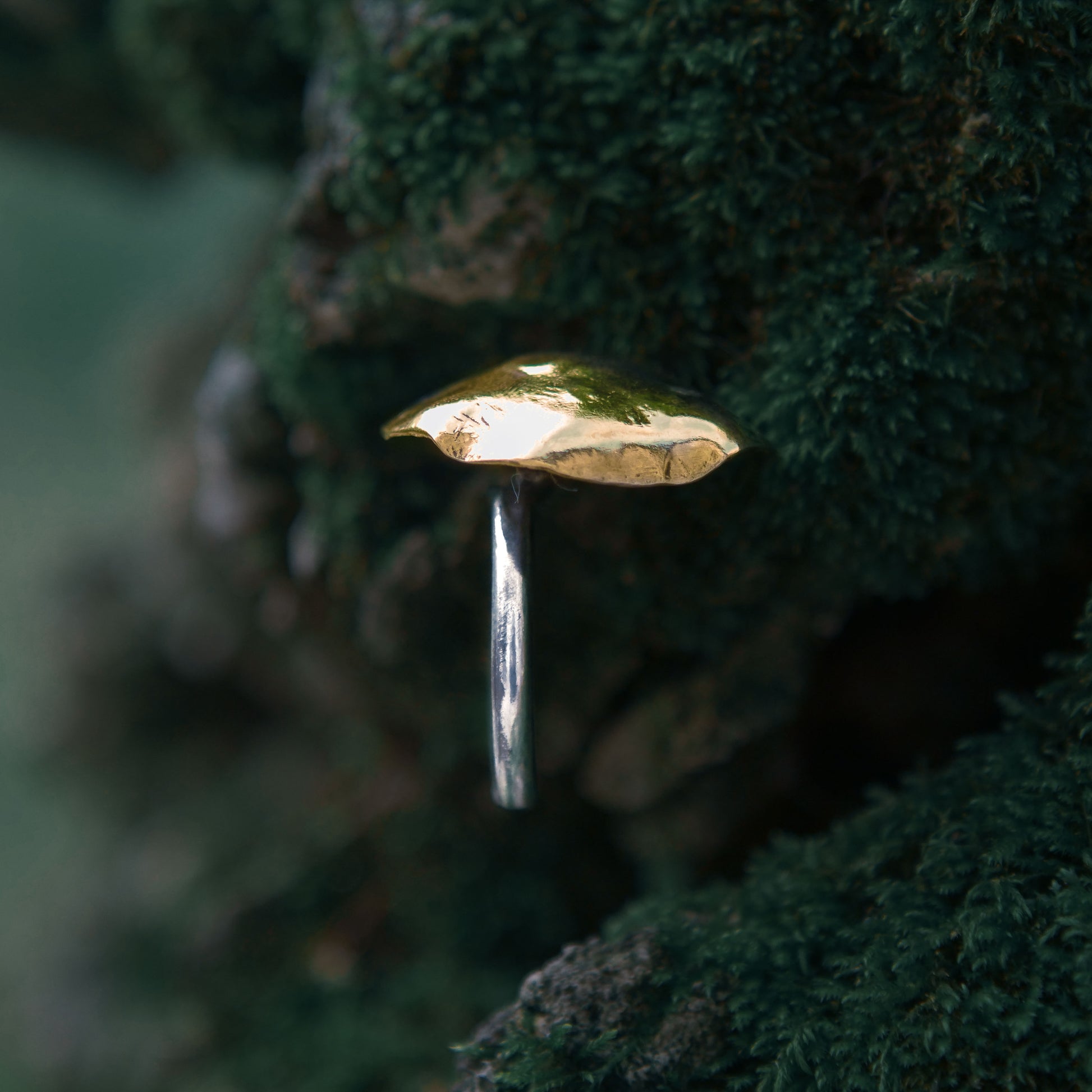 Disponibile in due varianti: con 'fungo' ottone (colore dorato) o argento, la base dell'anello per entrambi i modelli è in argento