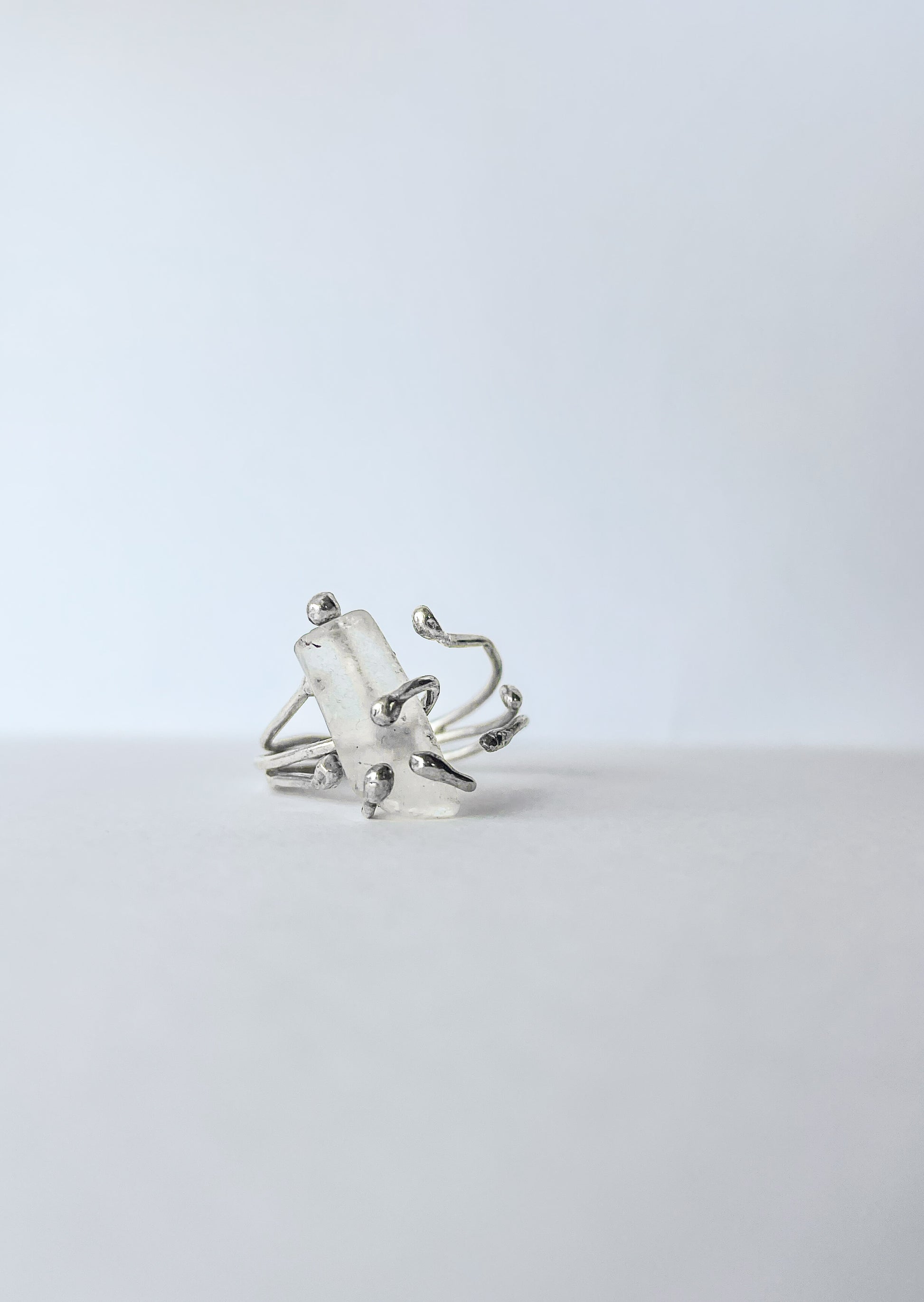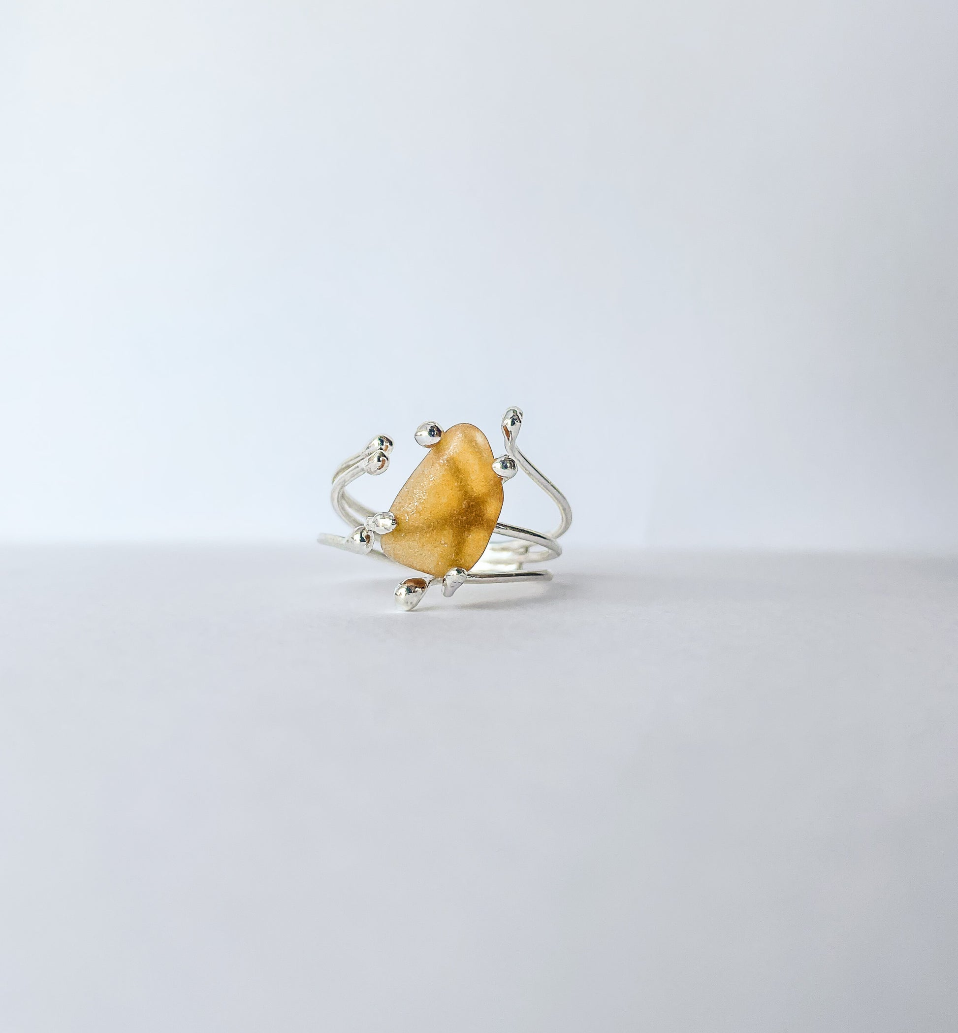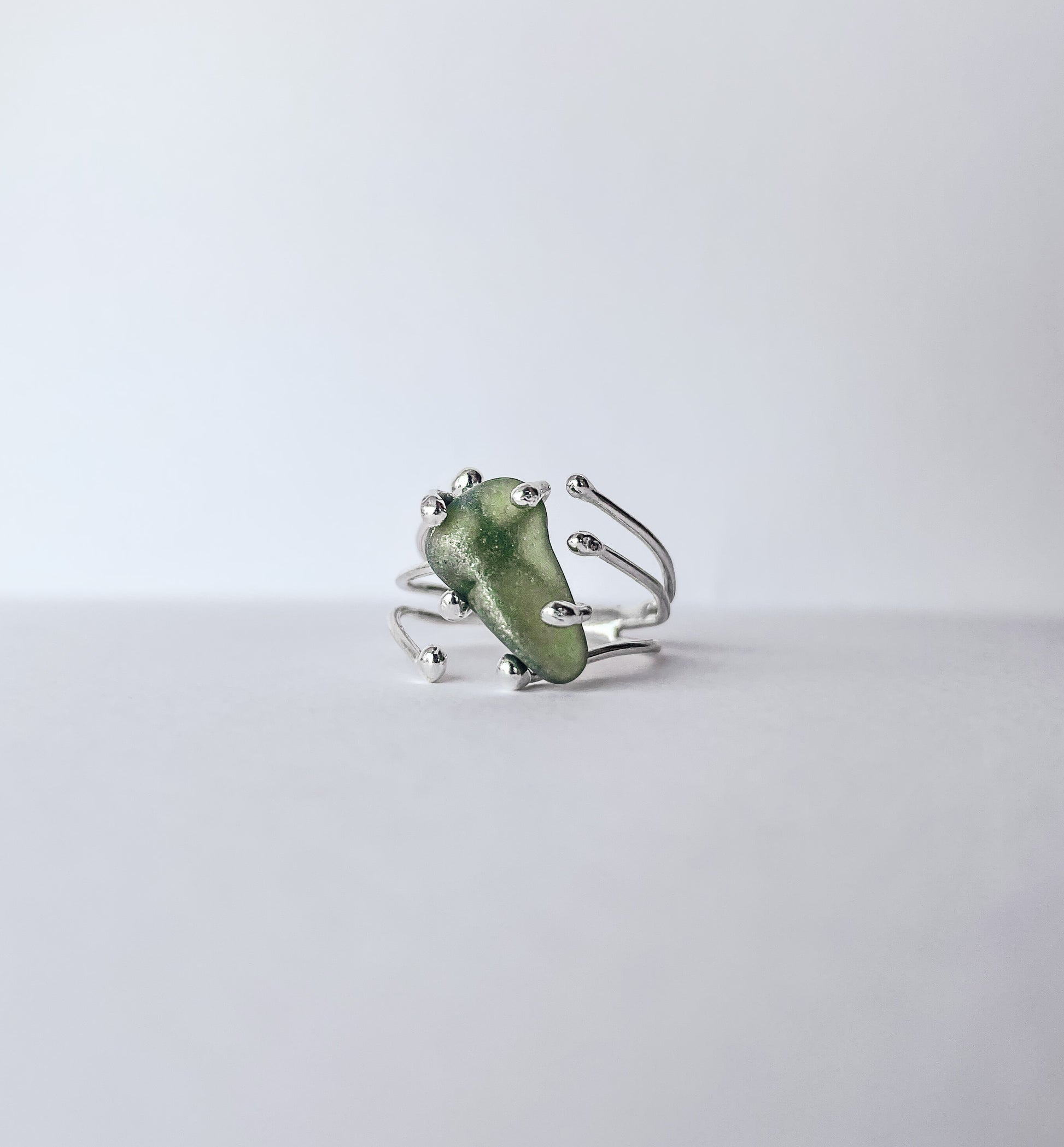 Anello in argento 925 e vetri raccolti a mano dalla spiaggia.