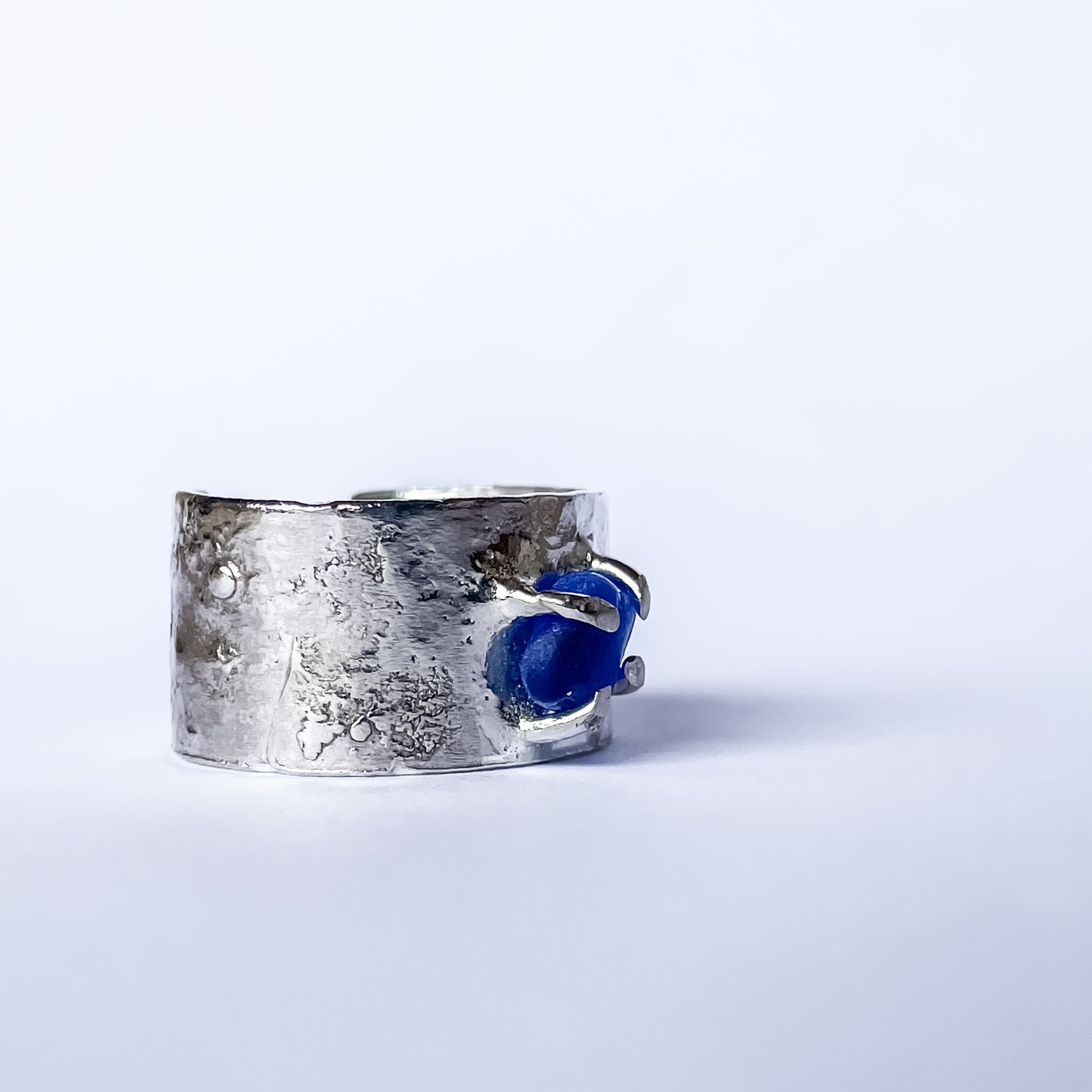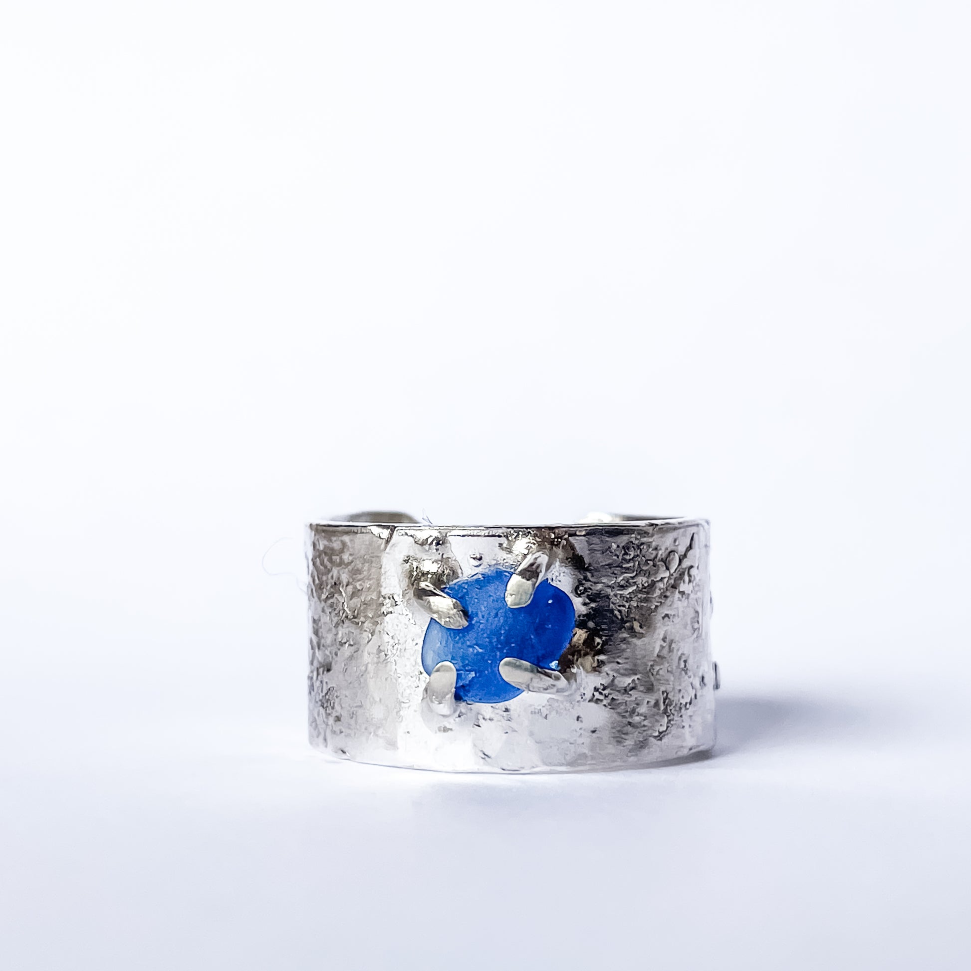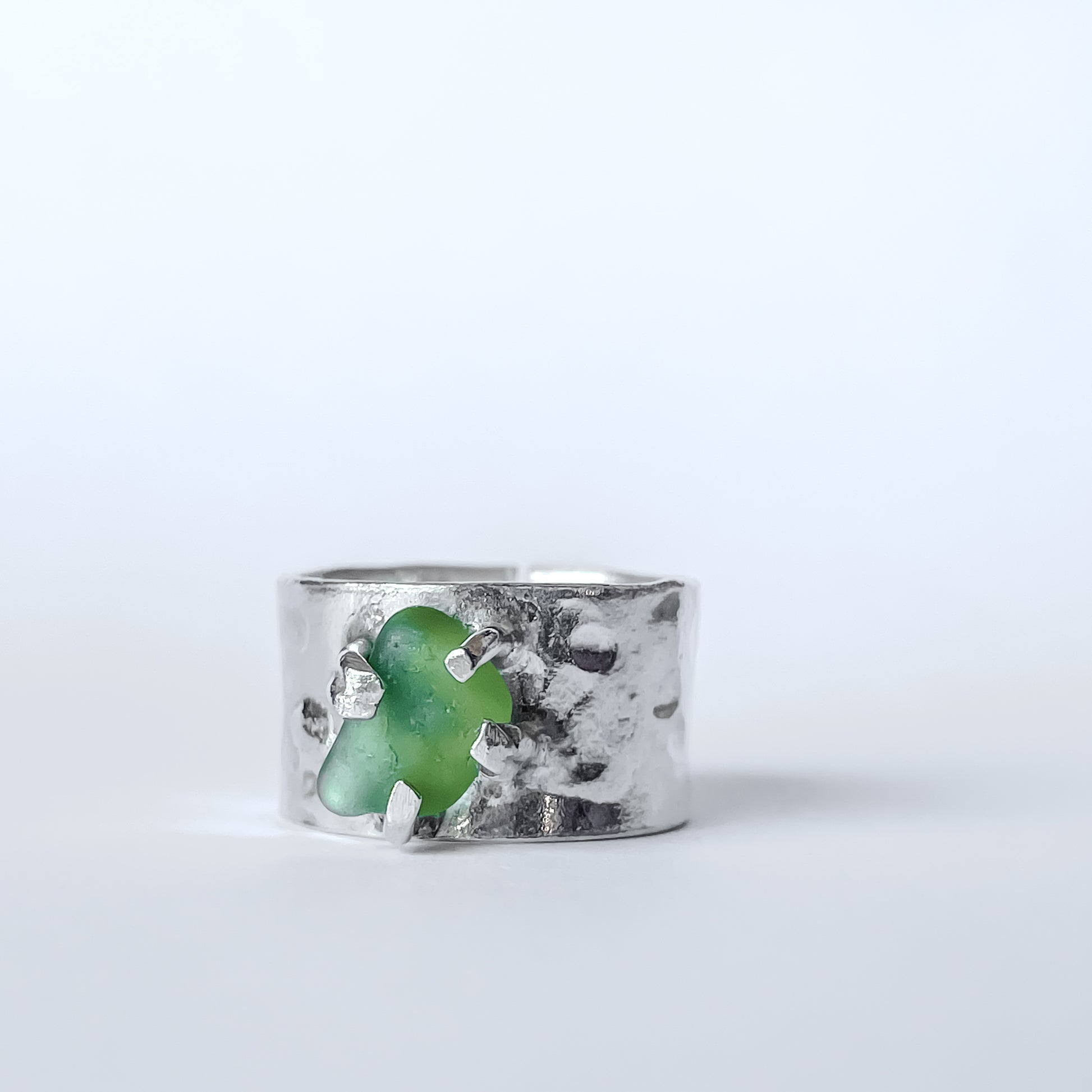 Anello in argento 925 e vetri raccolti a mano dalla spiaggia.