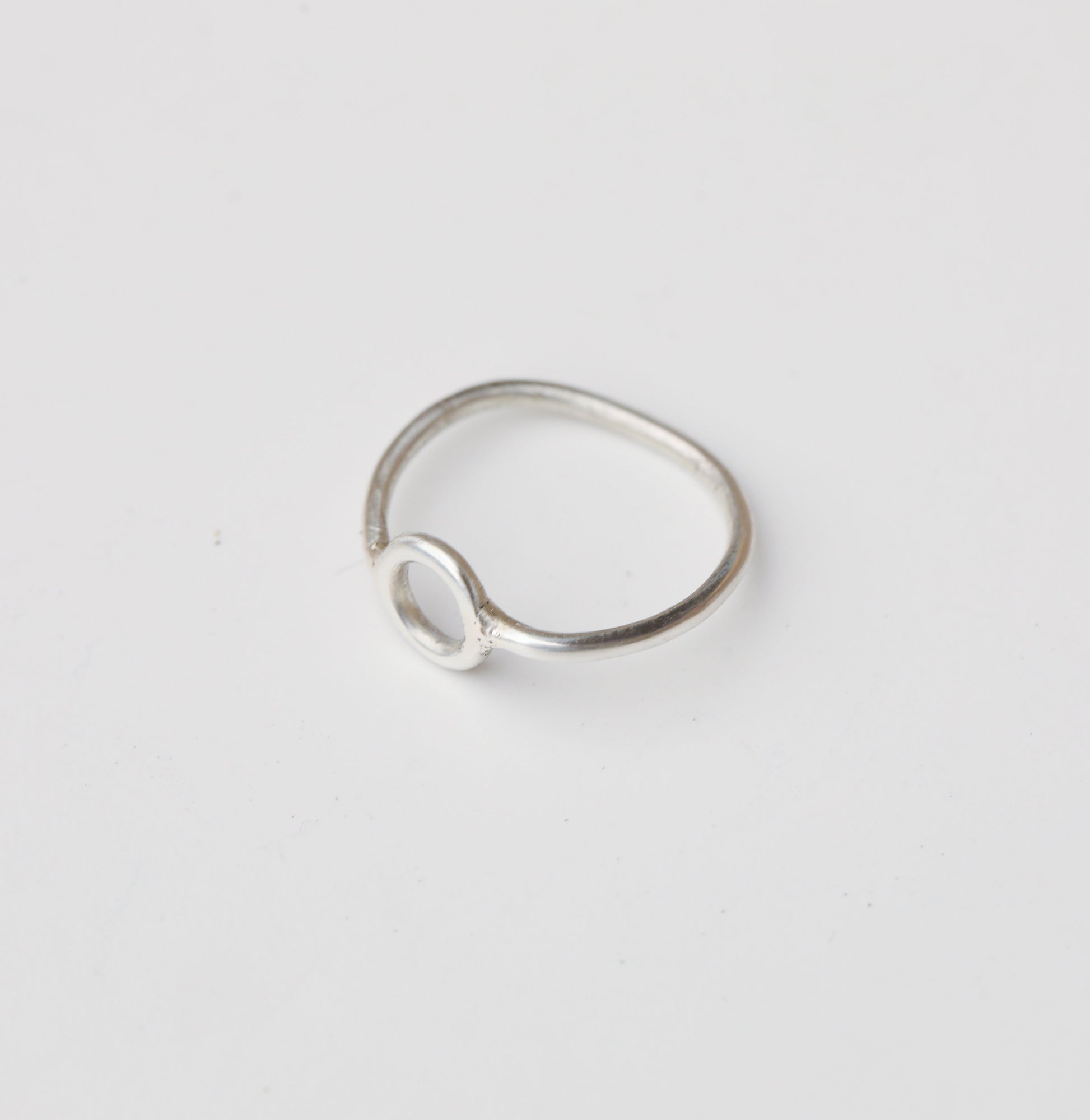 Anello dal design semplice a fedina con mini cerchio disponibile in argento con saldatura fatta a mano in argento.