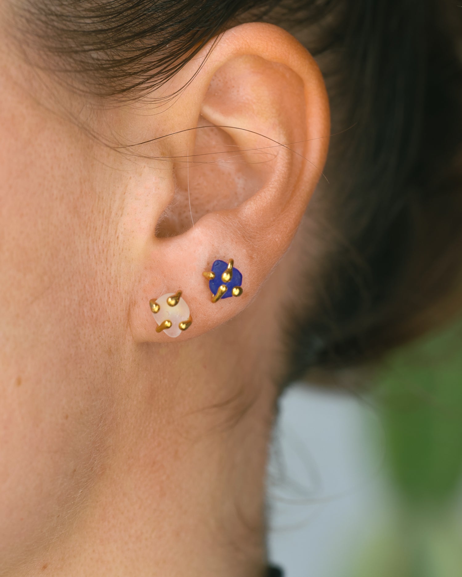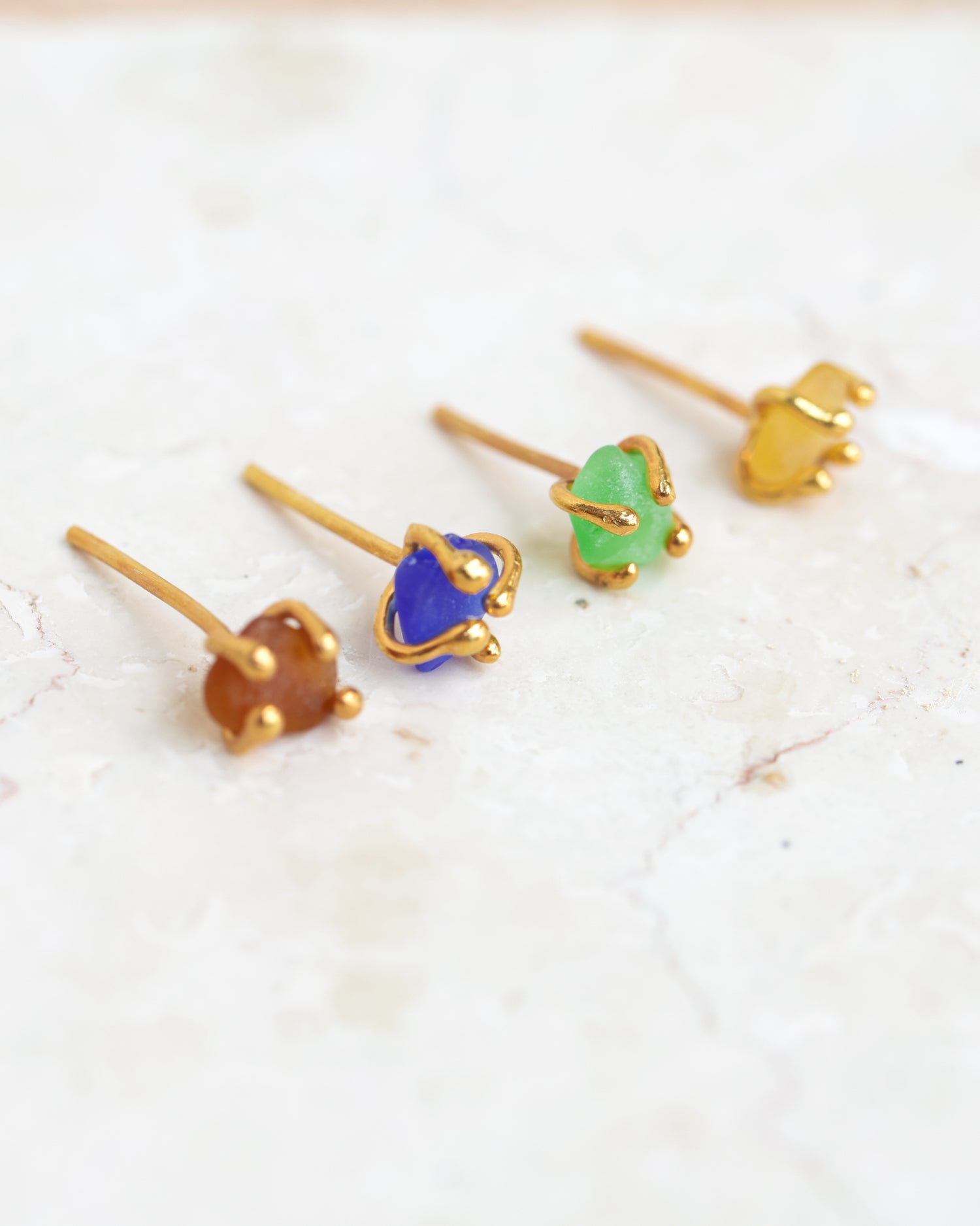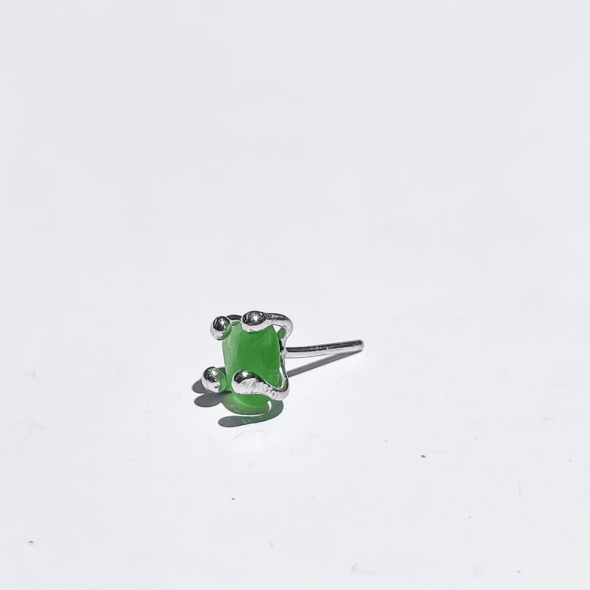 Orecchino a perno in argento 925 e vetri raccolti a mano dalla spiaggia.