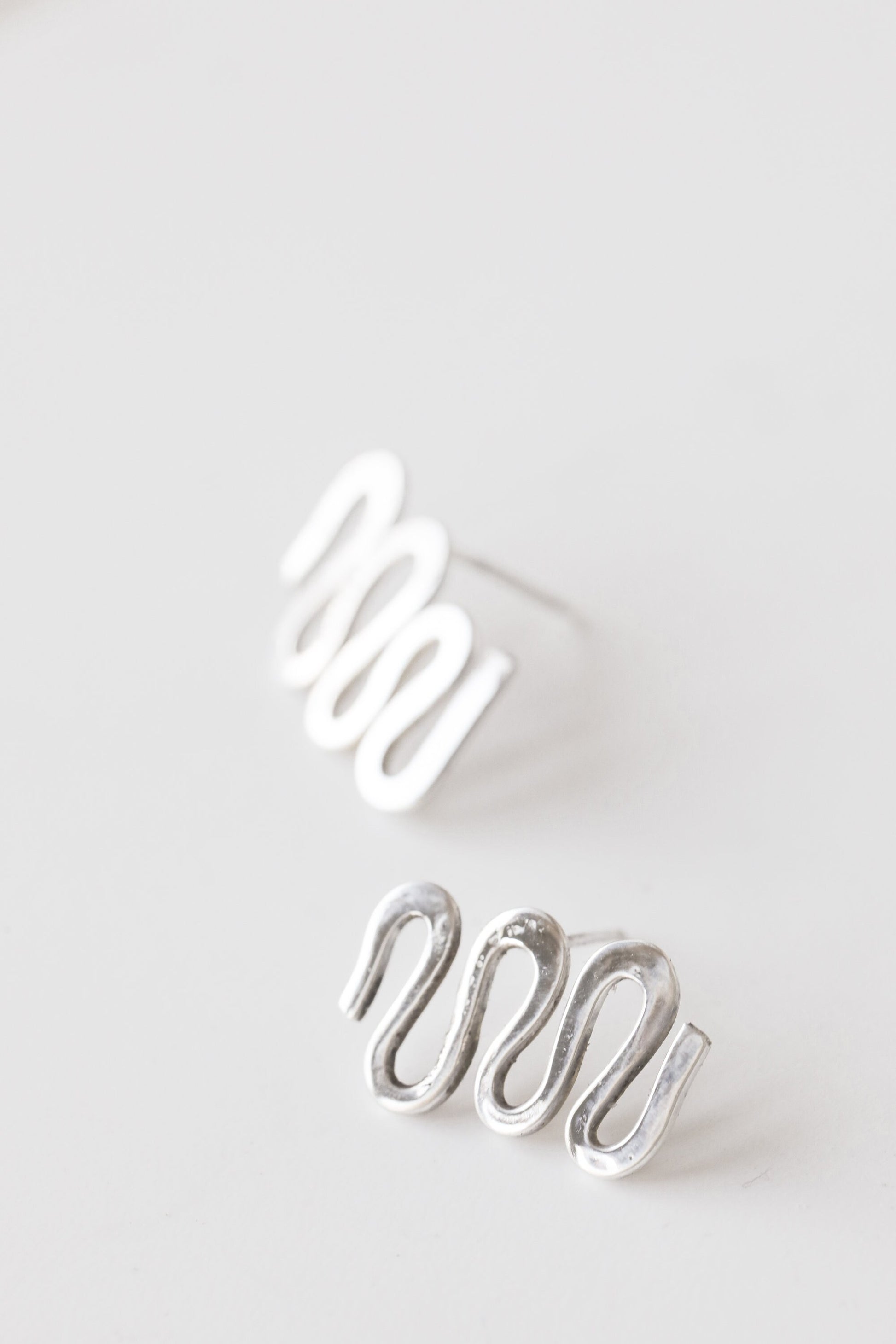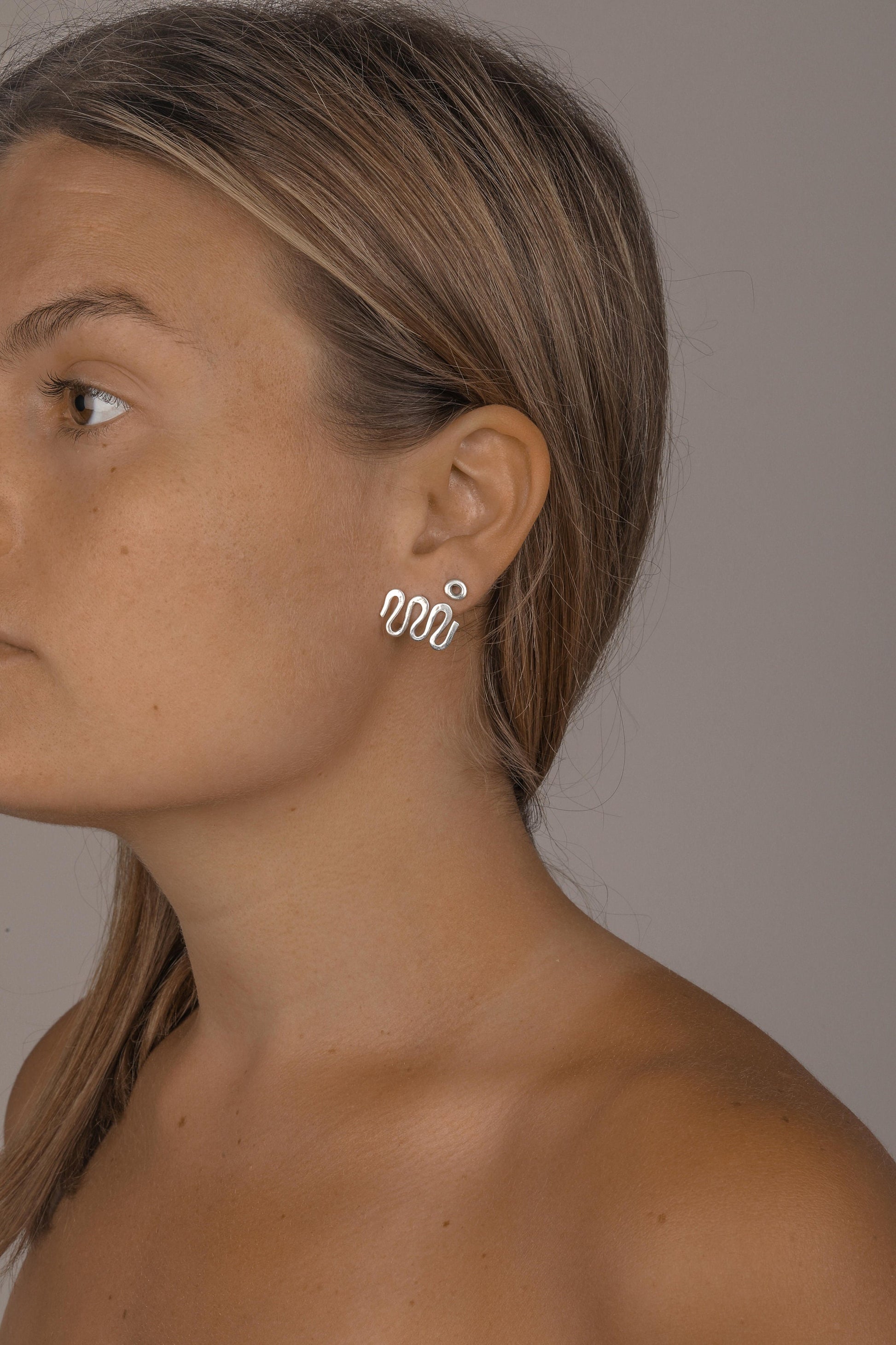 Orecchini dal design semplice e minimale disponibili in argento 925, indossabili sia al lobo che su secondi buchi.