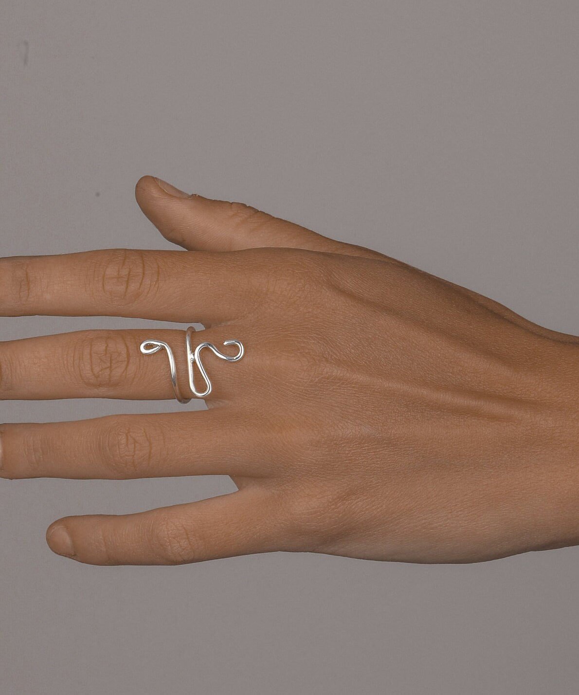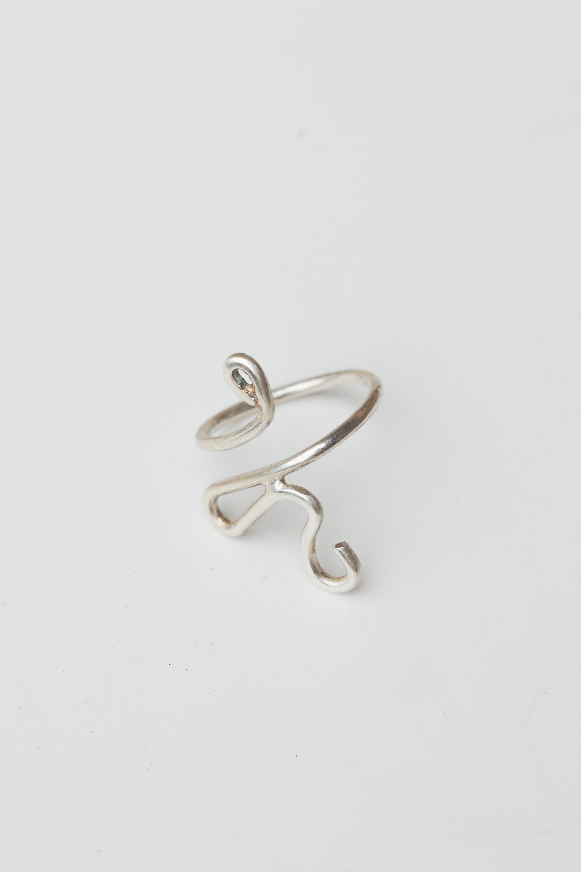 Anello dal design semplice a serpente aperto disponibile in argento con saldatura fatta a mano in argento.