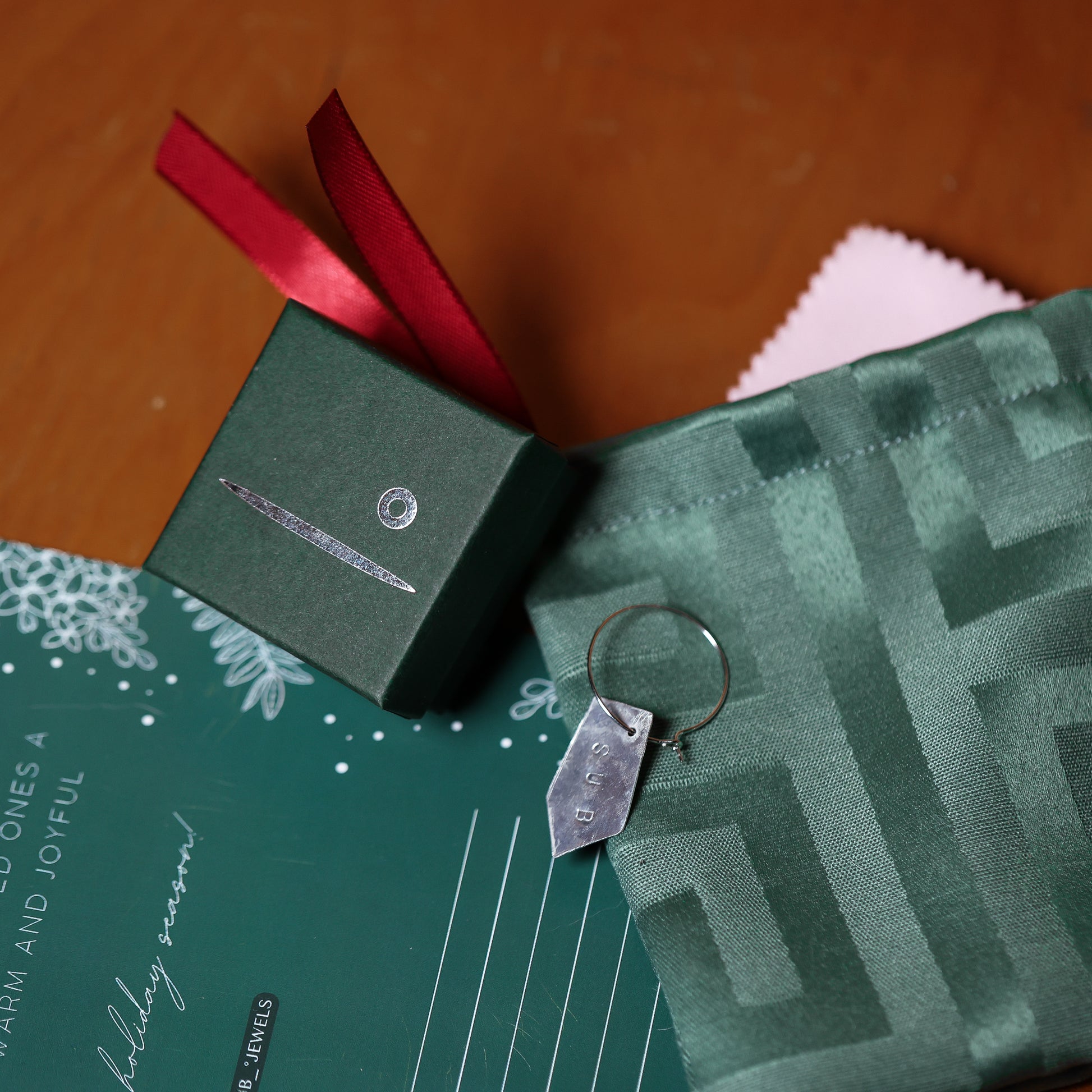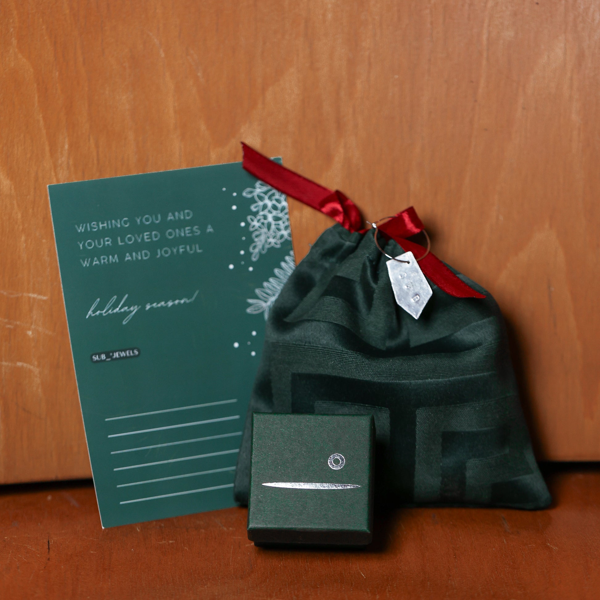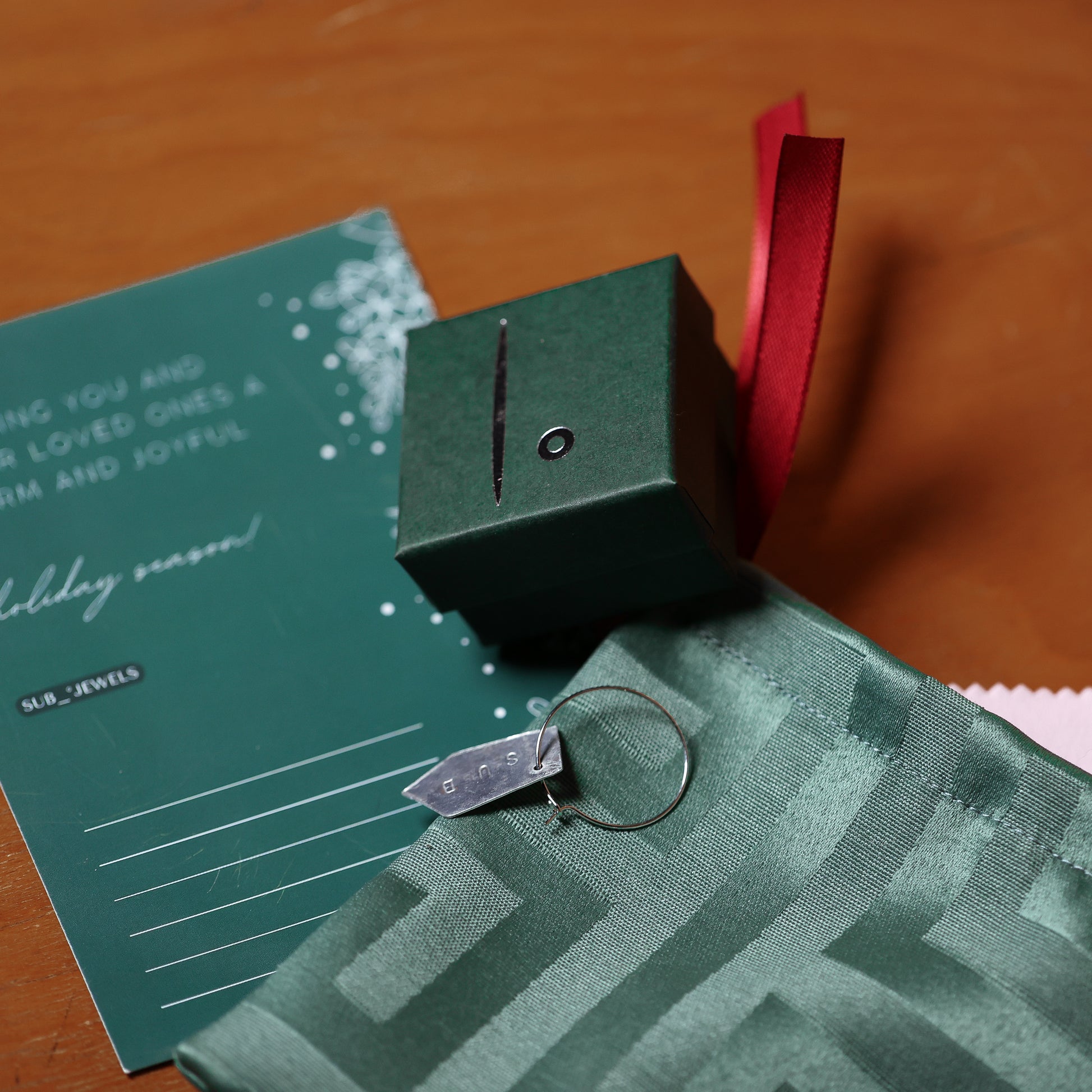 - 1 scatolina personalizzata verde con logo SUB_° argentato (piccola o grande a seconda del gioiello o dei gioielli ordinati. Nel caso vengano ordinati più gioielli indicare quali debbano essere inseriti nella scatolina della confezione regalo. Diversamente tutti i gioielli ordinati verranno inseriti nella confezione).