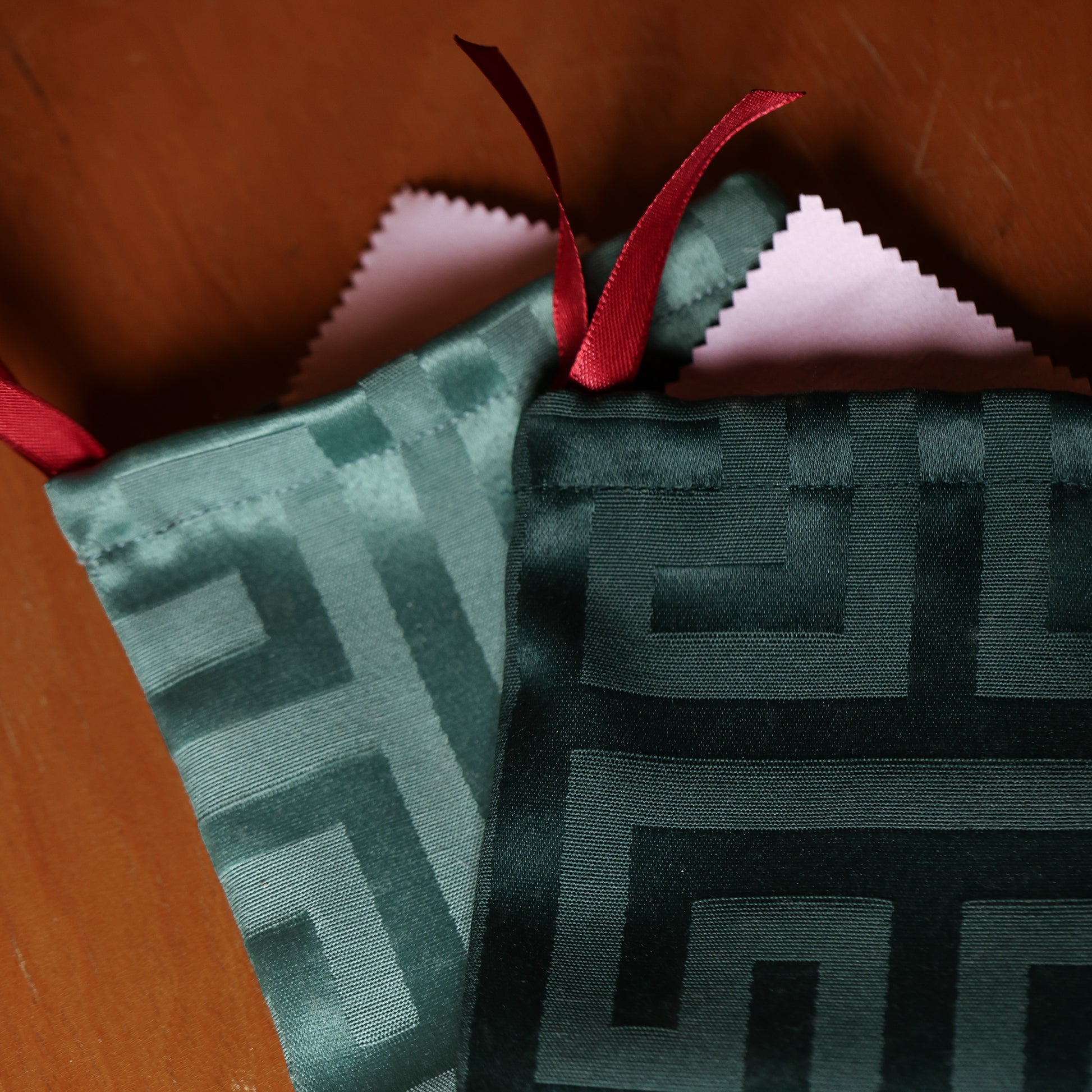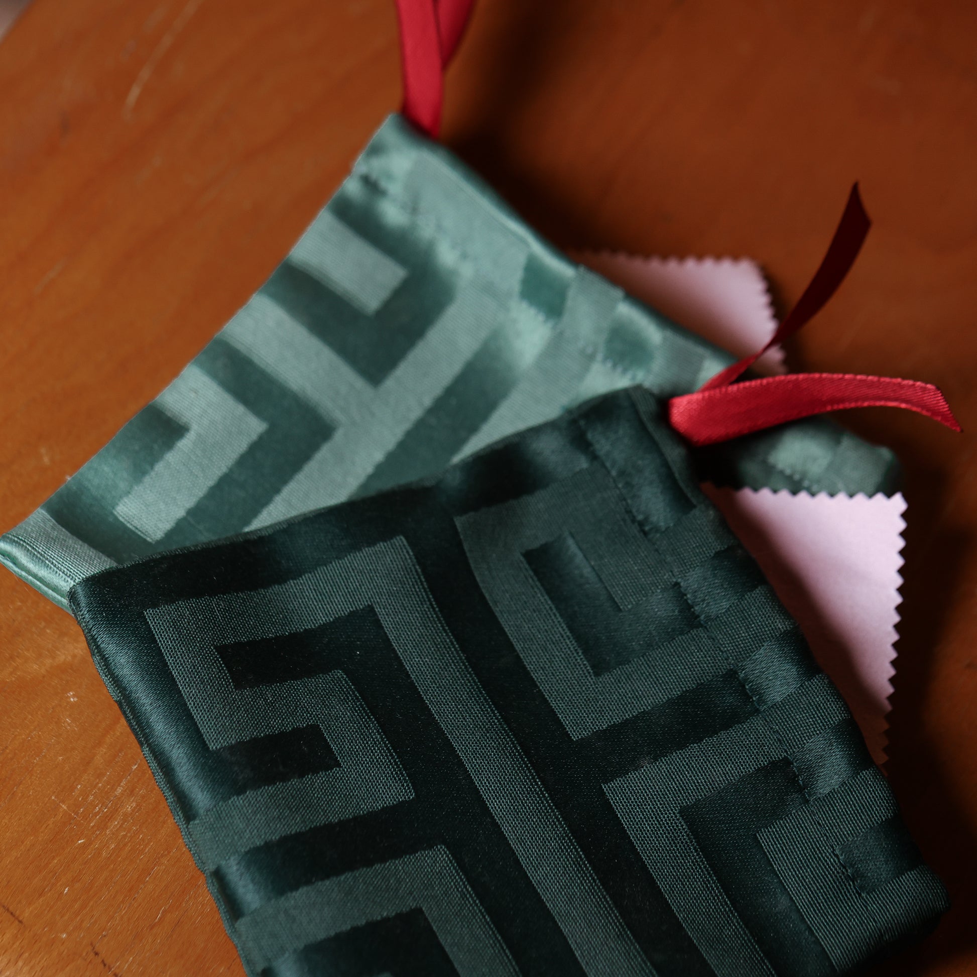 - 1 sacchettino realizzato a mano con stoffa speciale (color verde chiaro/scuro)