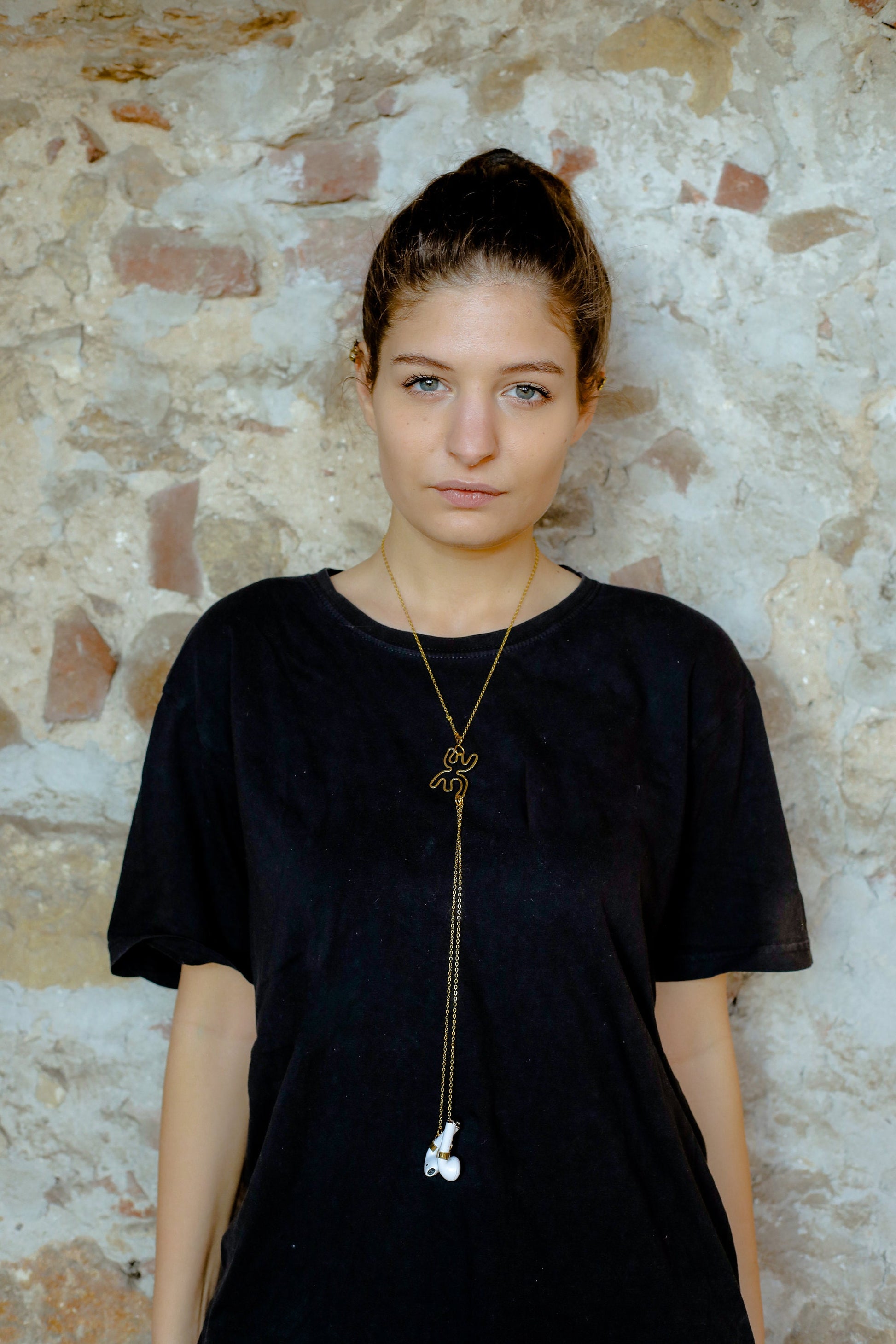 Collana dal design in argento, indossabile sia come semplice collana sia come porta aipods.