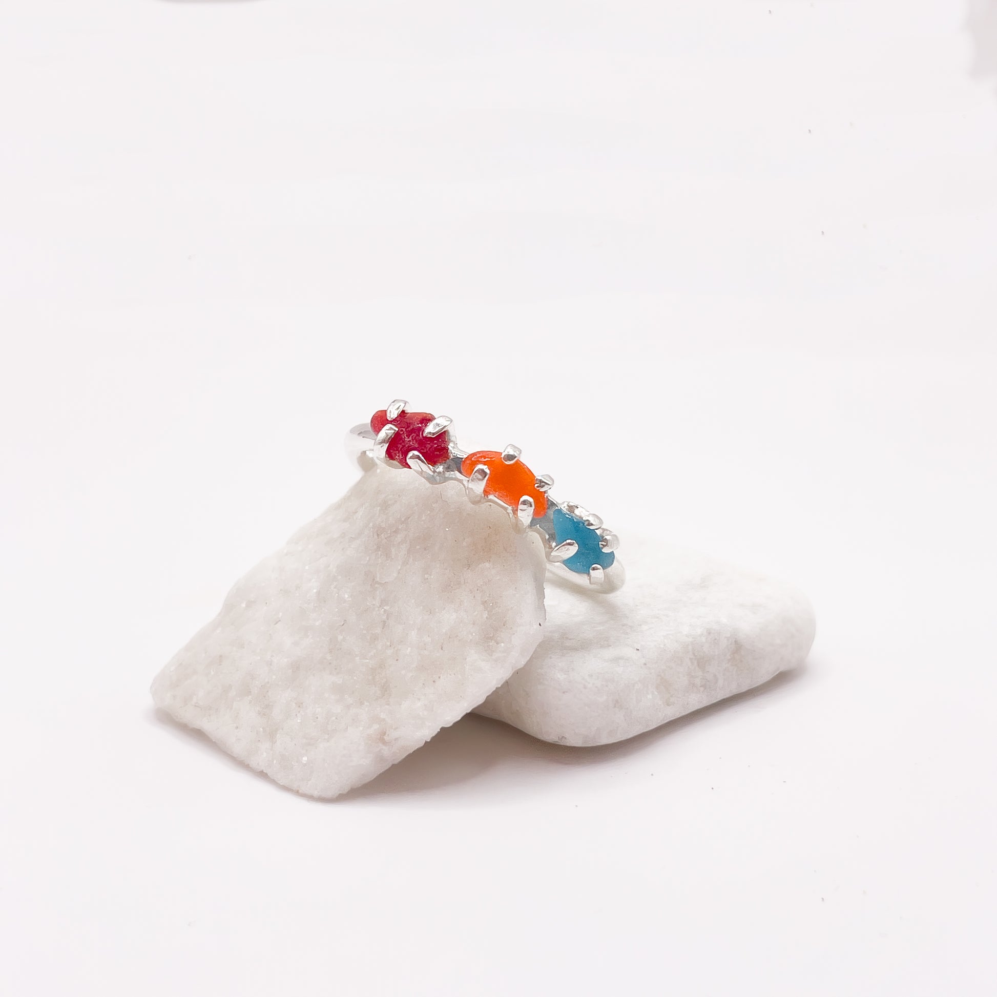 Anello in argento 925 e vetri rari raccolti a mano dalla spiaggia.