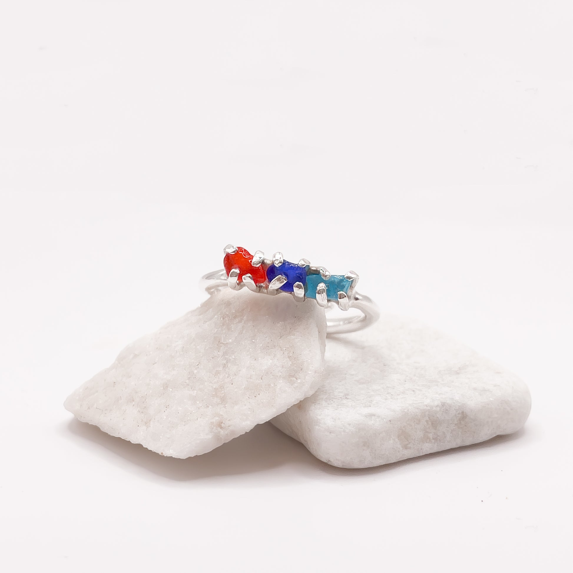 Anello in argento 925 e vetri rari raccolti a mano dalla spiaggia.