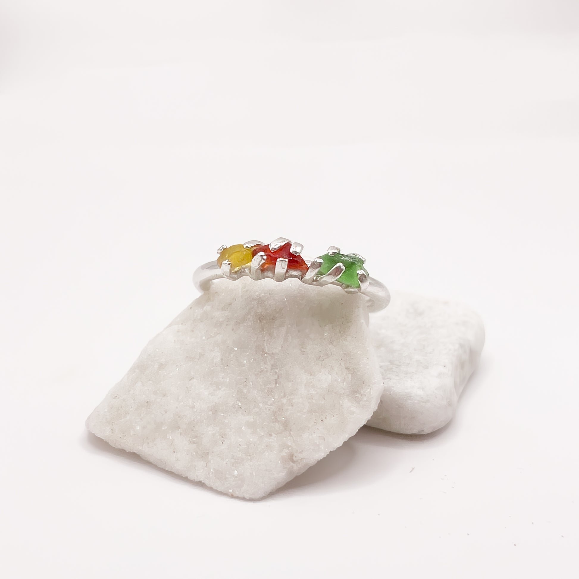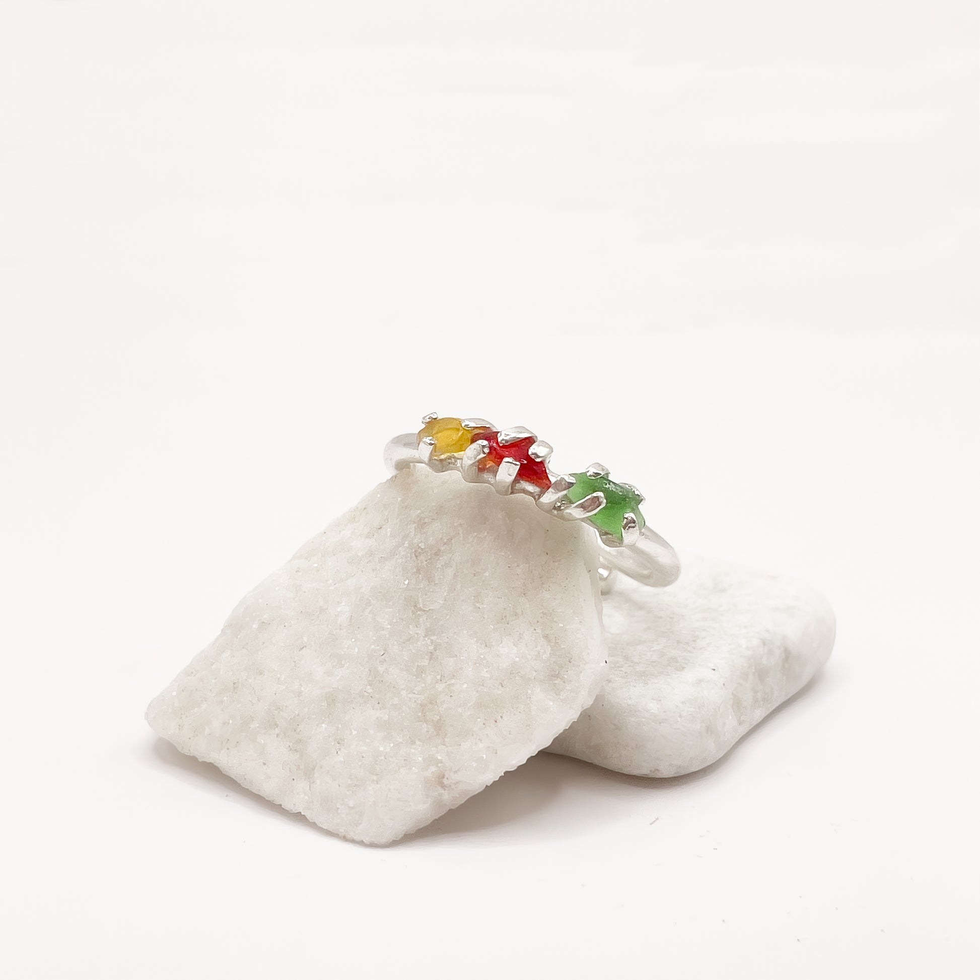 Anello in argento 925 e vetri rari raccolti a mano dalla spiaggia.