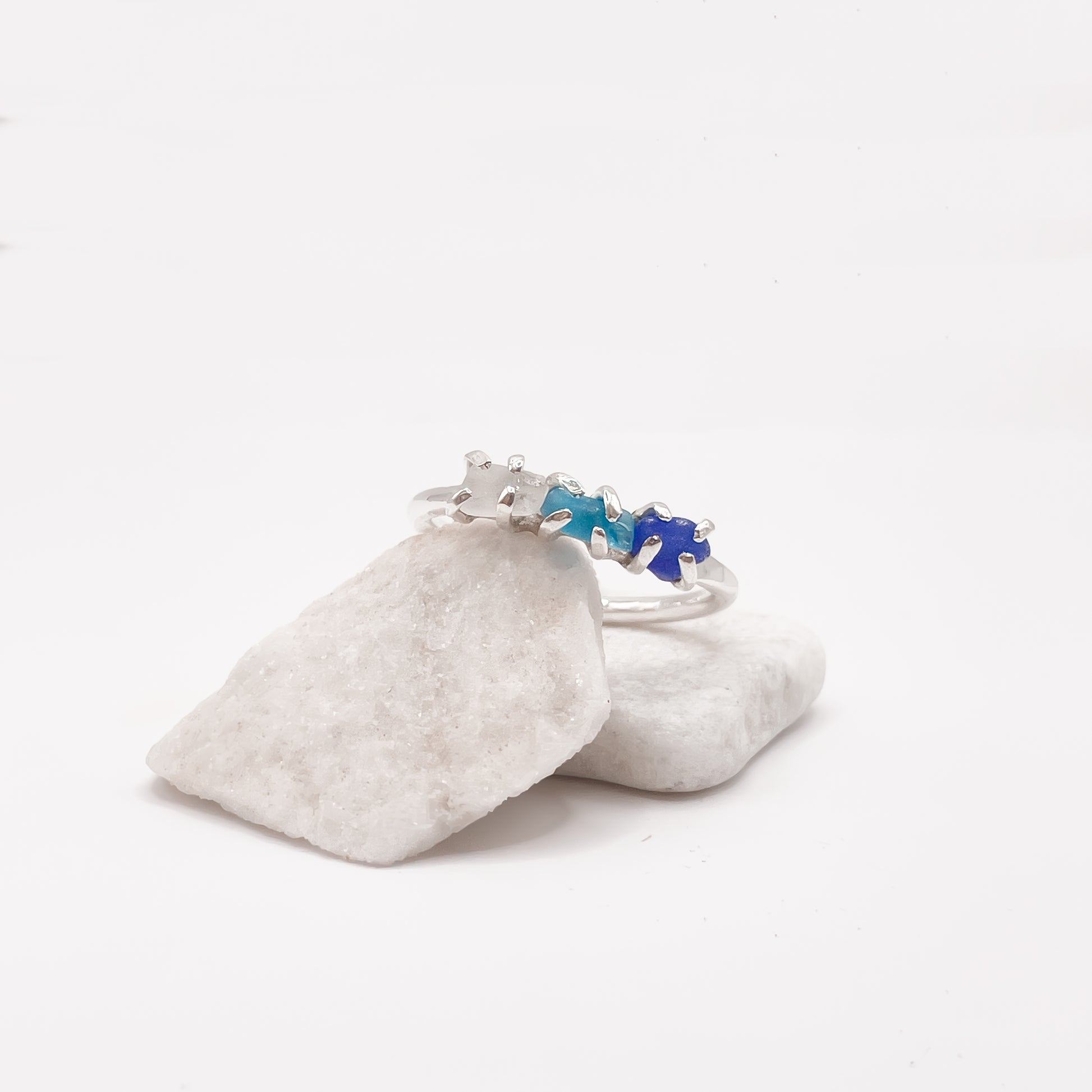 Anello in argento 925 e vetri rari raccolti a mano dalla spiaggia.
