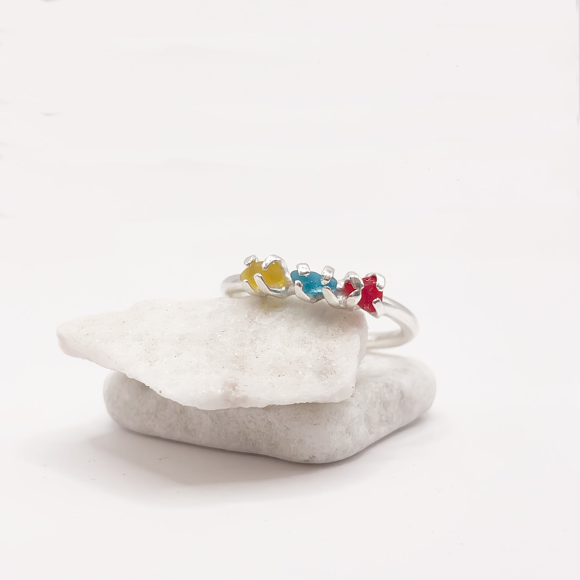 Anello in argento 925 e vetri rari raccolti a mano dalla spiaggia.