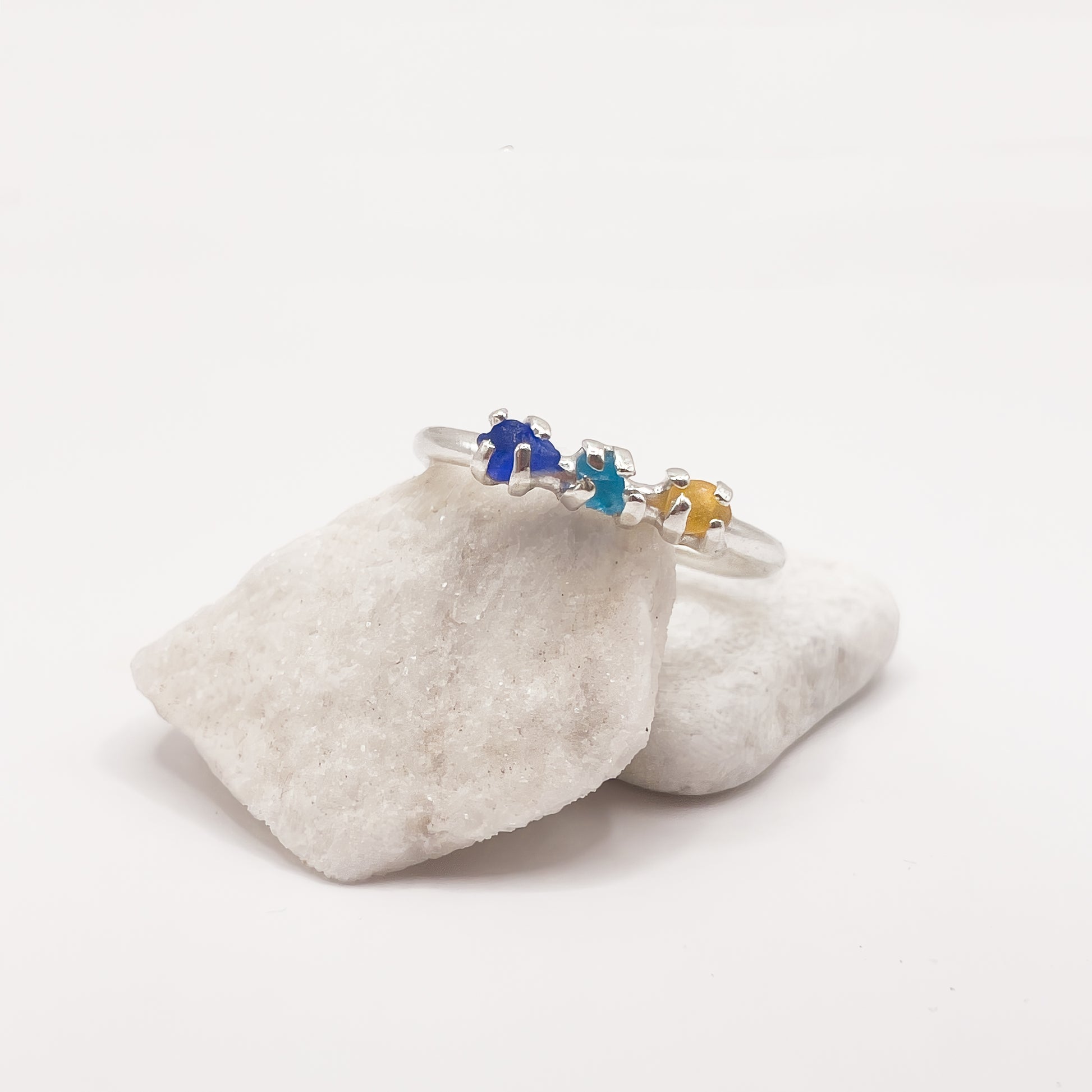 Anello in argento 925 e vetri rari raccolti a mano dalla spiaggia.