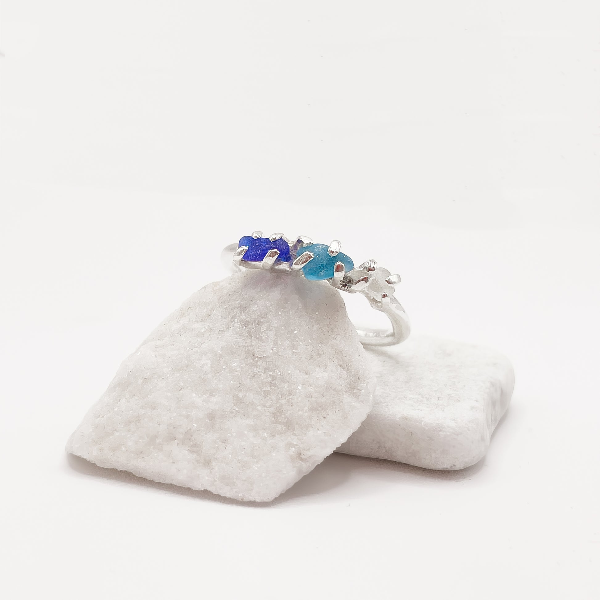 Anello in argento 925 e vetri rari raccolti a mano dalla spiaggia.