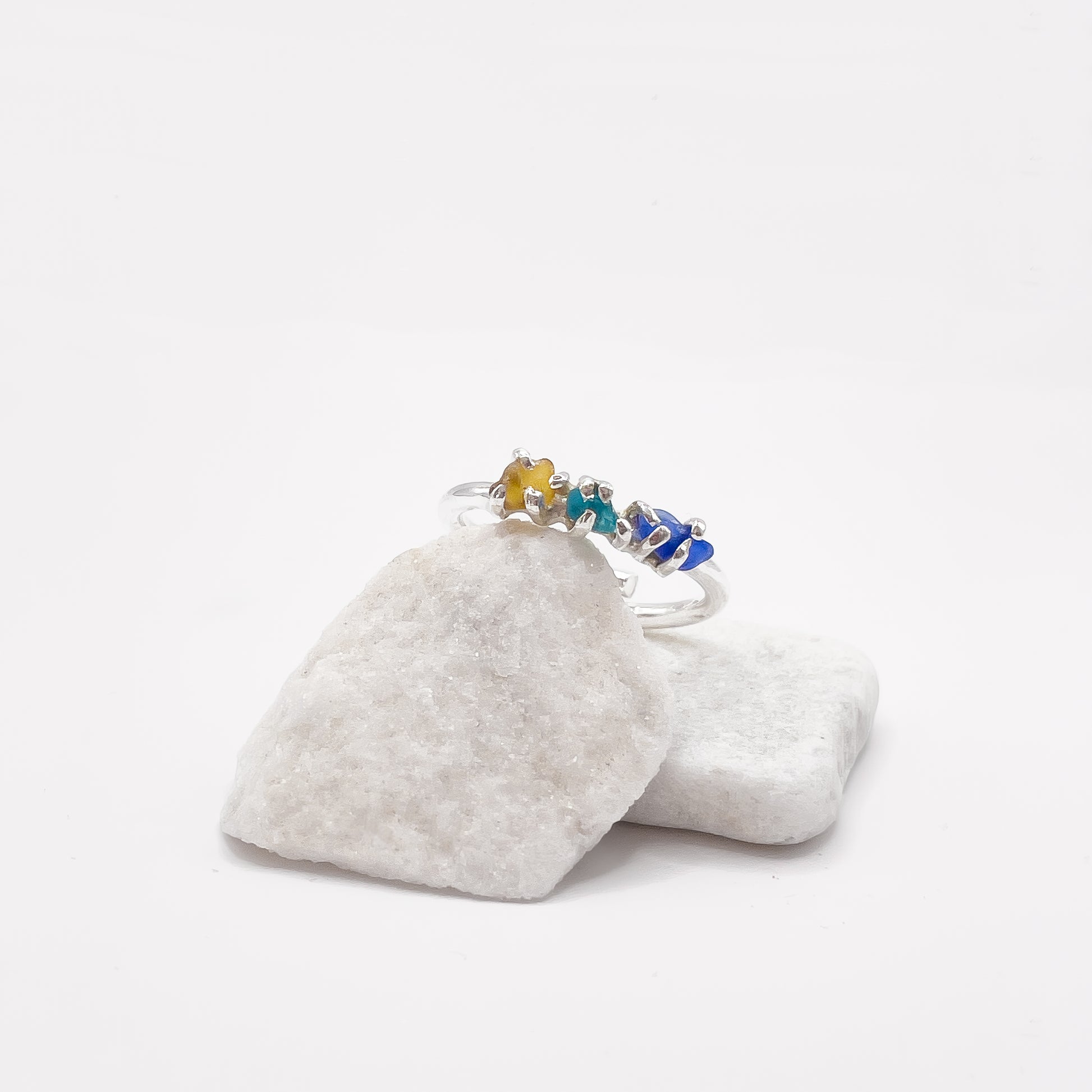 Anello in argento 925 e vetri rari raccolti a mano dalla spiaggia.