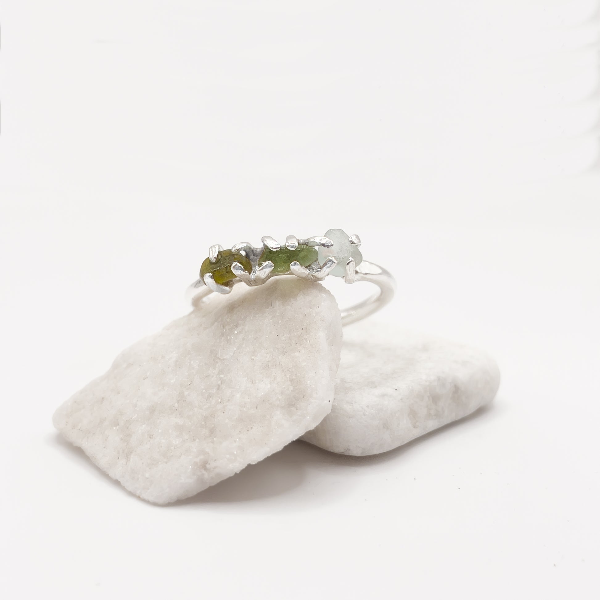 Anello in argento 925 e vetri rari raccolti a mano dalla spiaggia.