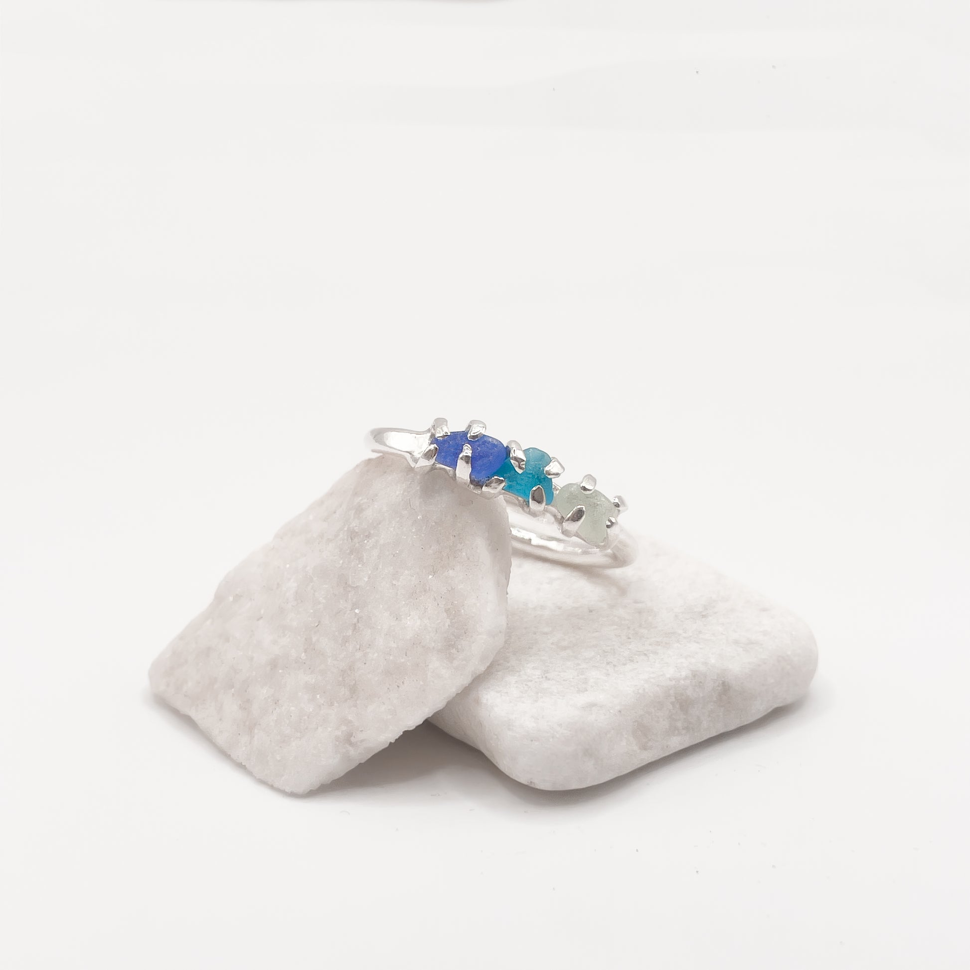 Anello in argento 925 e vetri rari raccolti a mano dalla spiaggia.