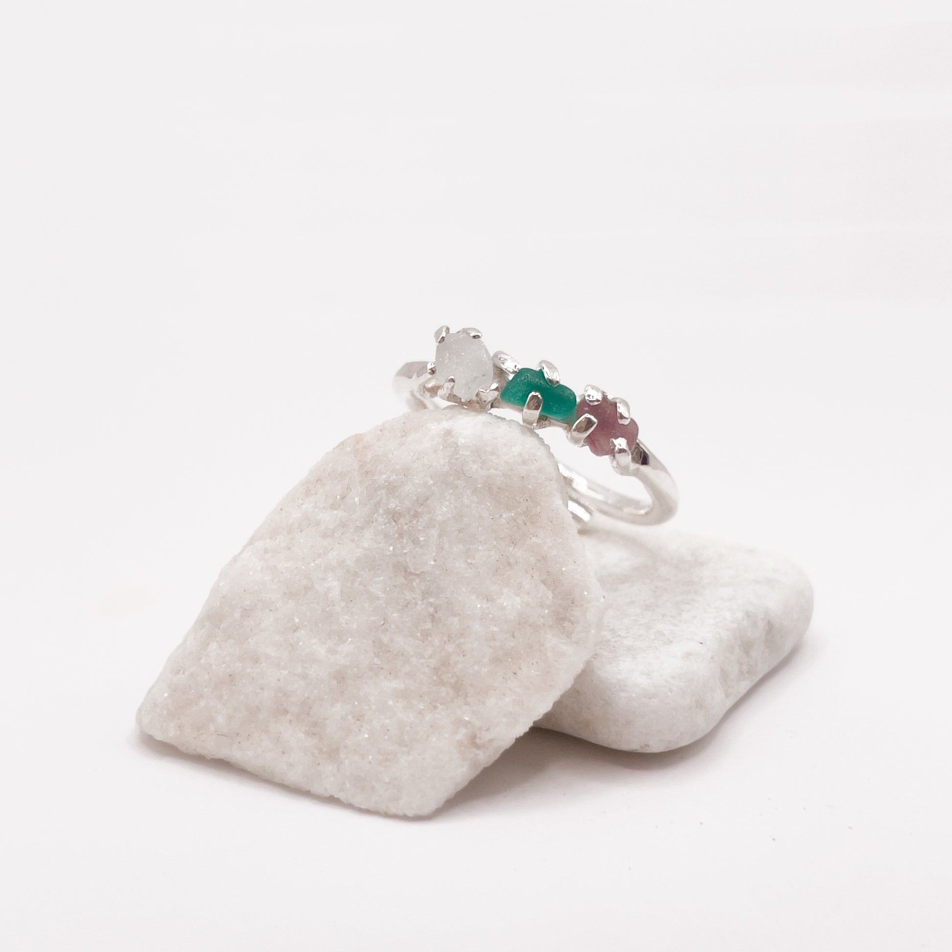 Anello in argento 925 e vetri rari raccolti a mano dalla spiaggia.